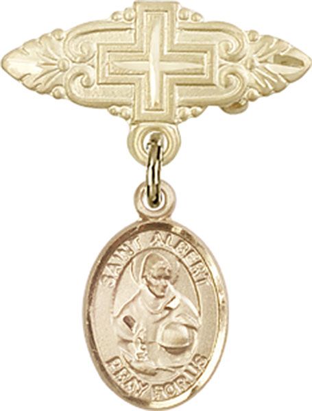 14kt Gold Filled Baby Badge with St. Albert the Great Charm and Badge Pin With Cross