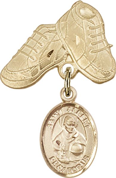 14kt Gold Filled Baby Badge with St. Albert the Great Charm and Baby Boots Badge Pin