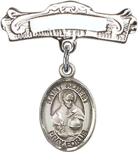 Sterling Silver Baby Badge with St. Albert the Great Charm and Badge Pin