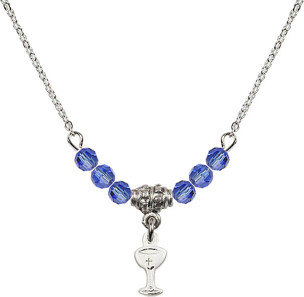 Necklace with 4mm Sapphire Crystal Beads & Sterling Chalice Medal