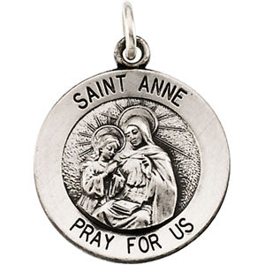This Round St Anne Pendant Medal measures 14.5 millimeters, approximately 5/8-inch round.