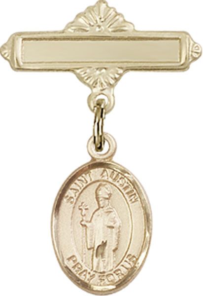 14kt Gold Filled Baby Badge with St. Austin Charm and Polished Badge Pin