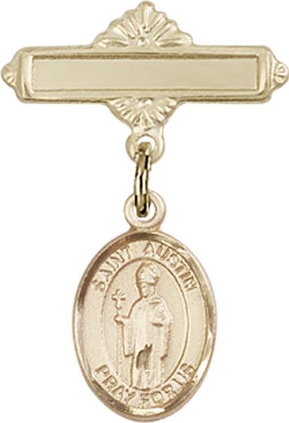 14kt Gold Baby Badge with St. Austin Charm and Polished Badge Pin