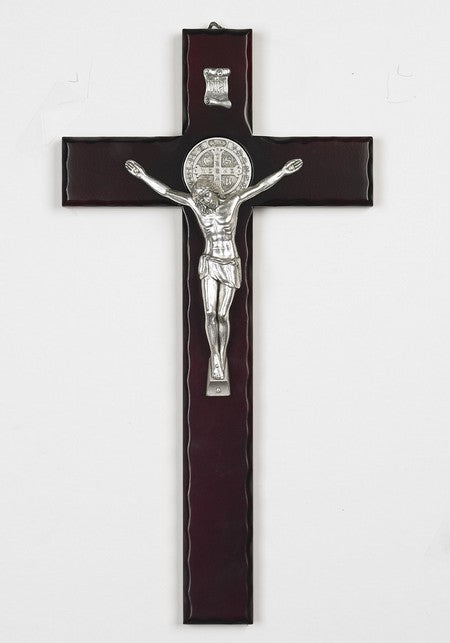 18 inch Wood St Benedict with Silver Corpus Boxed