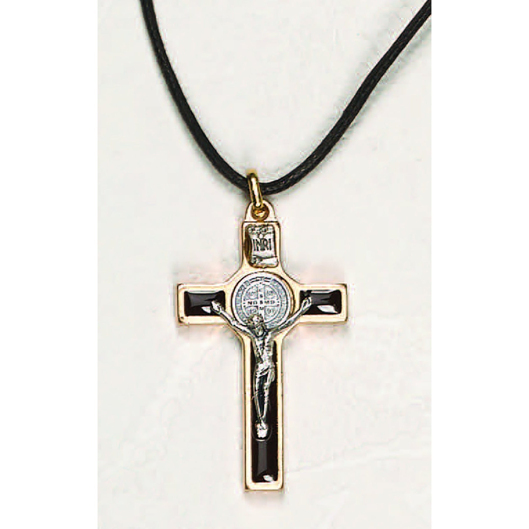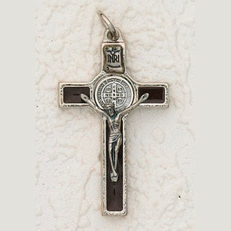 Embrace the powerful intercession of St. Benedict with our 2-1/2 inch St Benedict Cross featuring a rich Brown Enamel finish and a stunning Silver Corpus. This exquisite cross comes beautifully packaged in a corded box, accompanied by an explanation of the St. Benedict Medal, making it a thoughtful gift for any occasion or a cherished personal devotion. Imported from Italy, this piece is a testament to faith and artistry.