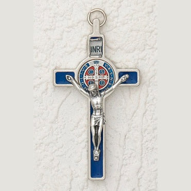 3 inch Enameled St Benedict Crucifix with Blue Enamel