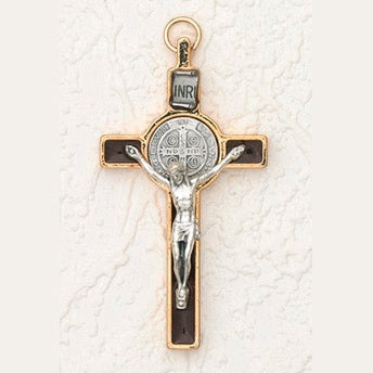 3 inch St Benedict Crucifix: Brown / Gold with Silver Corpus