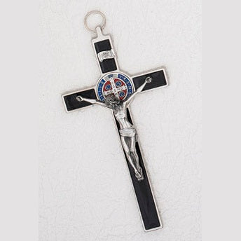 8 Inch Black Enamel Saint Benedict Cross