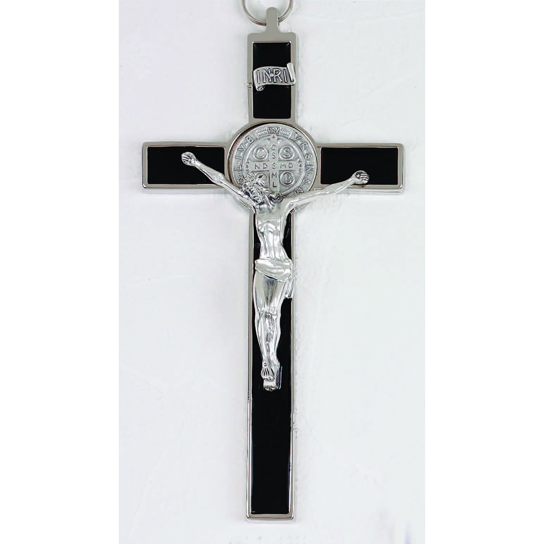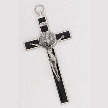 8 Inch Saint Benedict Black Enamel Cross Boxed