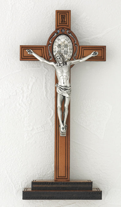 8 inch Wood St Benedict Cross on wood base is a beautiful representation of faith and protection, perfect for your home or as a thoughtful gift for loved ones. Crafted from high-quality wood and imported from Italy, this striking cross serves as a constant reminder of St. Benedict's powerful intercession against evil. Measuring 8 inches, it comes with a sturdy wood base that allows for easy display on a shelf, altar, or desk.