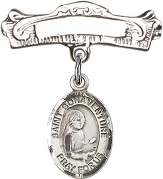 Sterling Silver Baby Badge with St. Bonaventure Charm and Badge Pin