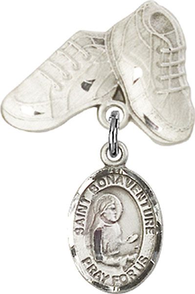 Sterling Silver Baby Badge with St. Bonaventure Charm and Baby Boots Badge Pin