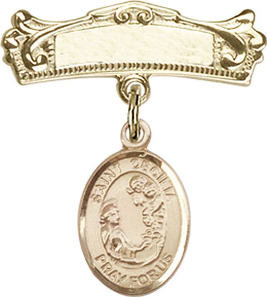 14kt Gold Badge Pin St. Cecilia Baby Badge - Engravable