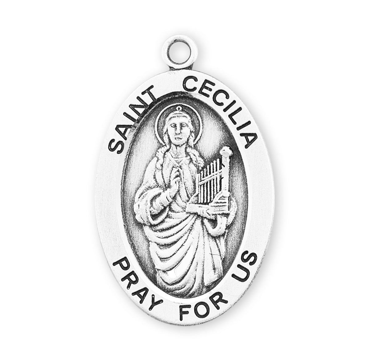 Top Seller! This Sterling Silver Oval Shaped St. Cecilia Medal is a Catholic Shop customer favorite.