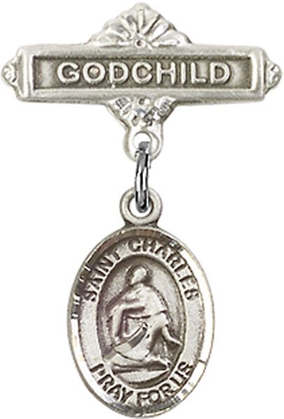Sterling Silver Baby Badge with St. Charles Borromeo Charm and Godchild Badge Pin