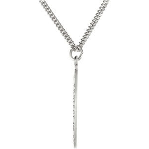Made of Sterling Silver, this religious jewelry piece weighs approximately 2.18 grams. It comes attached to a complimentary 18-inch chain in a jewelry box.