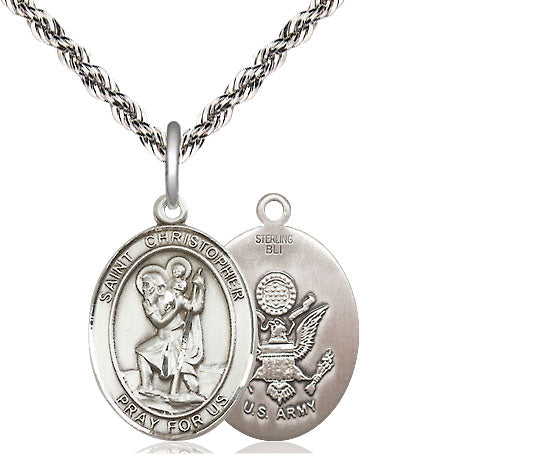 Sterling Silver Saint Christopher Army Medal | Medium