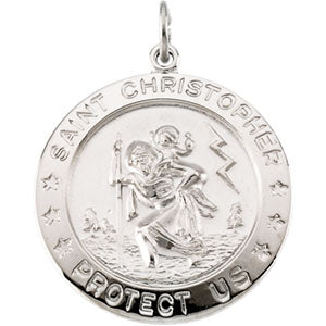 This St. Christopher Medal available from Catholic Shop.com features dimensions of 25 millimeters, approximately 1-inch round.