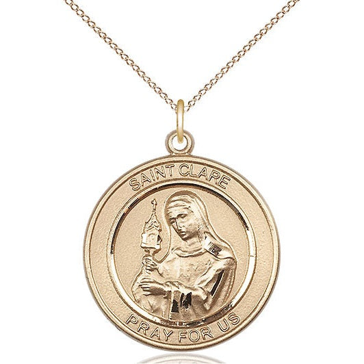 14kt Gold Filled St. Clare of Assisi Medal | Large | Engravable