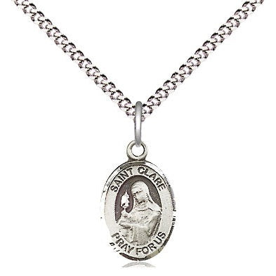 1/2 x 1/4 inch Sterling Silver St. Clare of Assisi Medal.