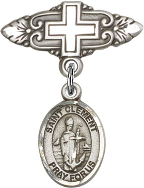 Sterling Silver Baby Badge with St. Clement Charm and Badge Pin With Cross