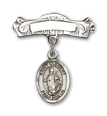 Sterling Silver Baby Badge with St. Clement Charm and Badge Pin