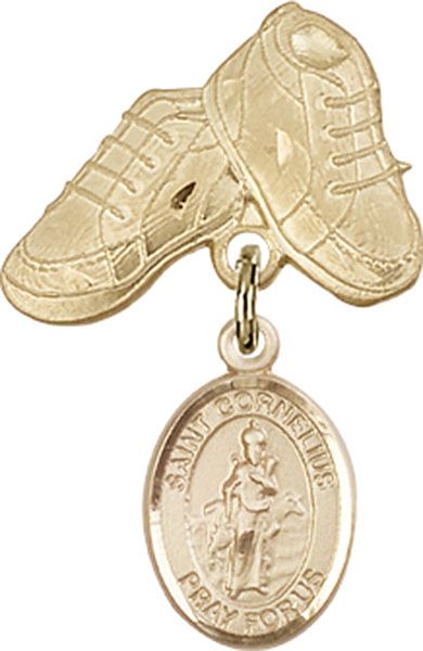 14kt Gold Baby Badge with St. Cornelius Charm and Baby Boots Badge Pin