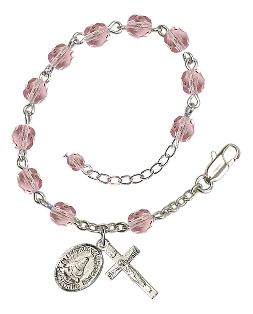 Silver-Plated 6mm Fire-Polished St. Edburga of Winchester Rosary Bracelet in Light Amethyst | Engravable