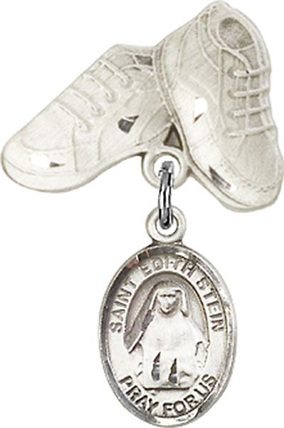 Sterling Silver Baby Badge with St. Edith Stein Charm and Baby Boots Badge Pin