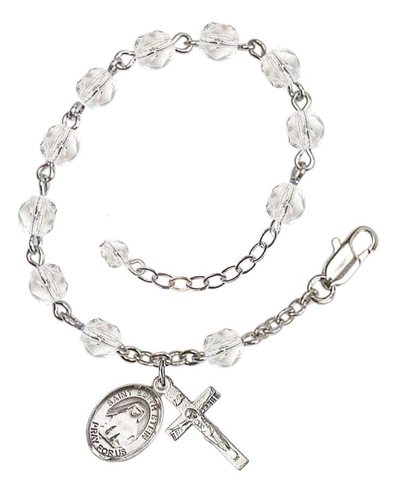 Our Adjustable Silver Plated 6mm-bead Fire-Polished Saint Edith Stein Rosary Bracelet in Crystal is handmade in the USA.