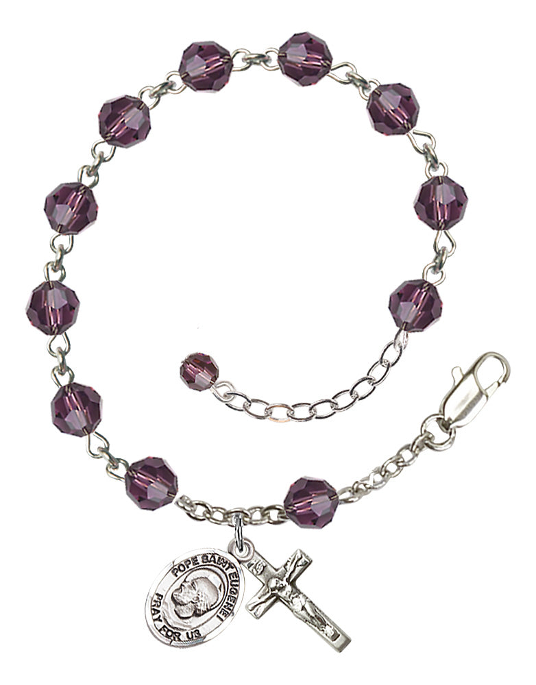 Sterling Silver 6mm Austrian Crystal Pope St. Eugene I Rosary Bracelet in Amethyst | Engravable