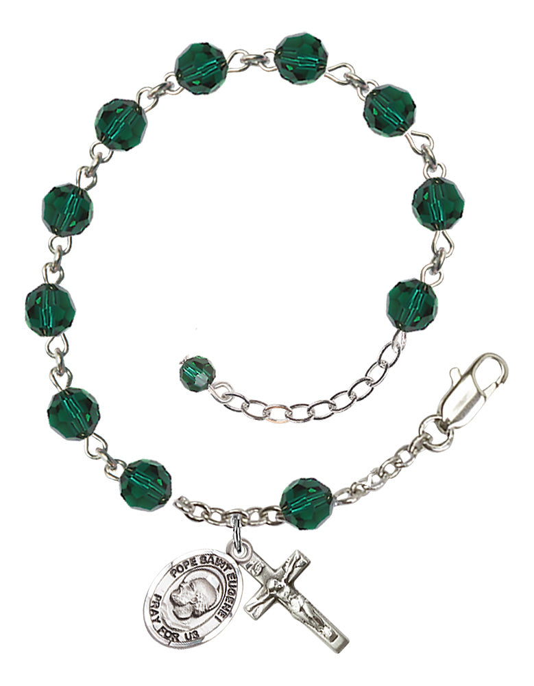 Sterling Silver 6mm Austrian Crystal Pope St. Eugene I Rosary Bracelet in Emerald | Engravable