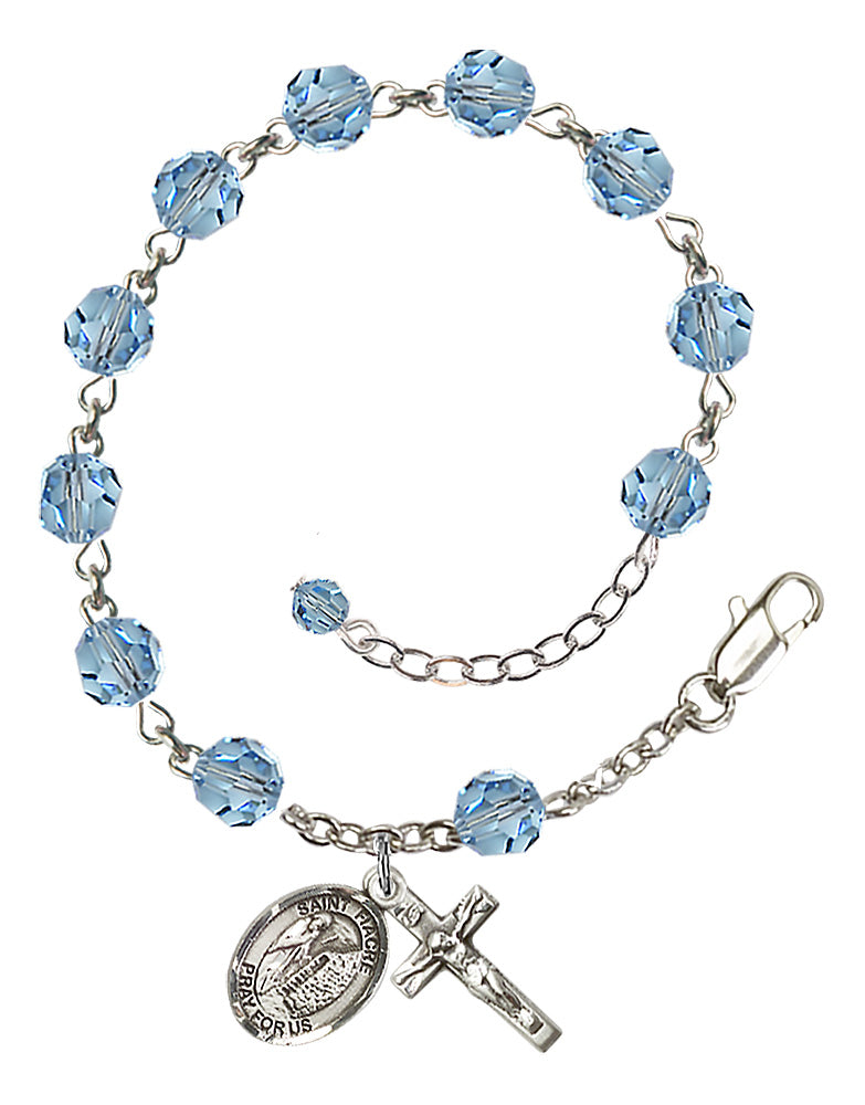 Sterling Silver 6mm Austrian Crystal St. Fiacre Rosary Bracelet in Aqua | Engravable