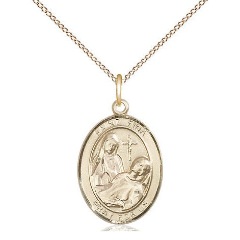 Our 14kt Gold Filled Saint Fina Medal is proudly manufactured in the USA.