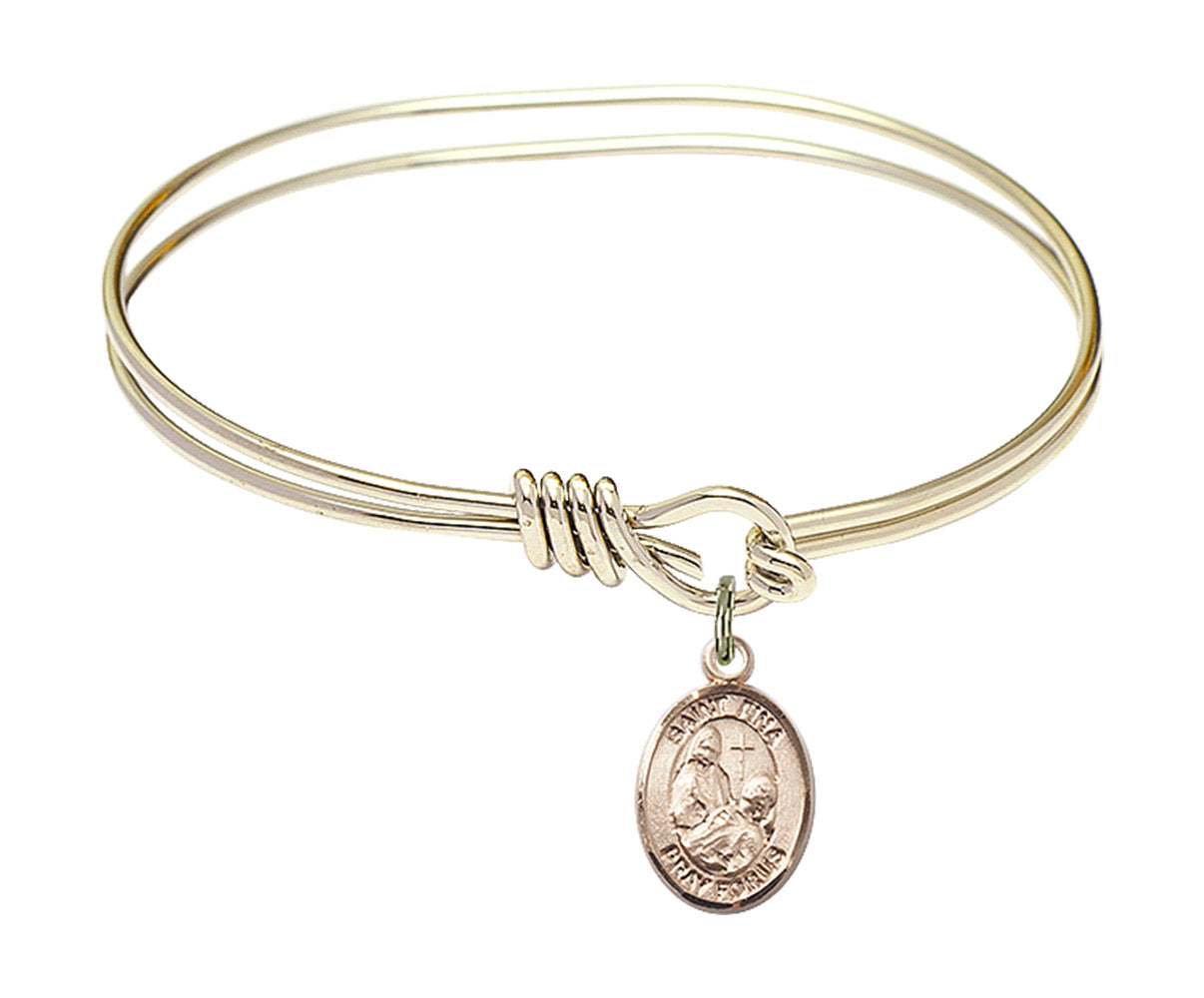 5 3/4-inch Eye Hook Bangle Bracelet | 14kt Gold Filled St. Fina Charm | Engravable