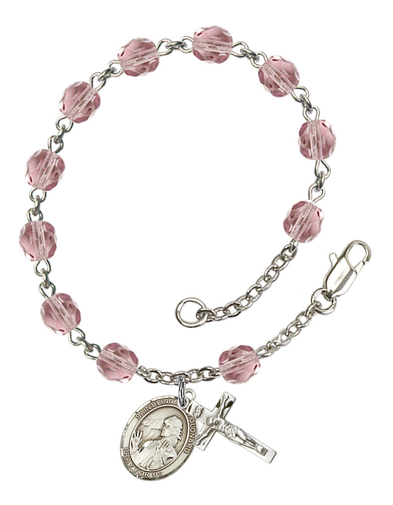 This premium rosary bracelet is proudly made in the USA using high-quality beads and Sterling silver-plated parts, so it is built to last for many generations. As part of our premium line of religious jewelry, this St. Finnian of Clonard 6mm-bead Lite Amethyst Fire Polished Rosary Bracelet are the perfect religious gift. It includes a free gift box and free shipping.