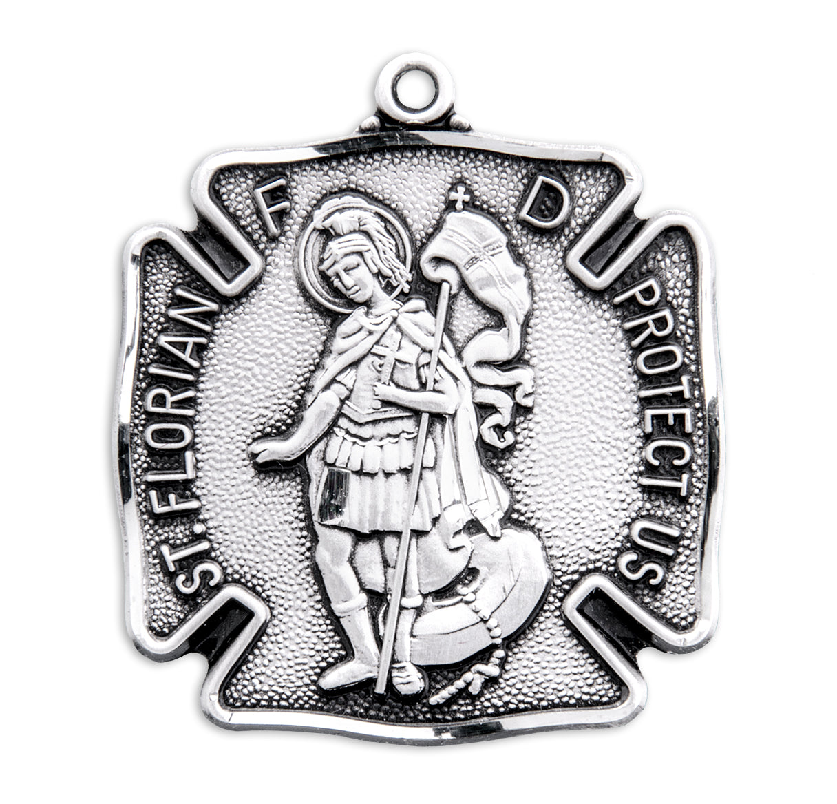 This 1.0625-inch Sterling Silver St. Florian Medal with 24-inch Chain is made in the USA.