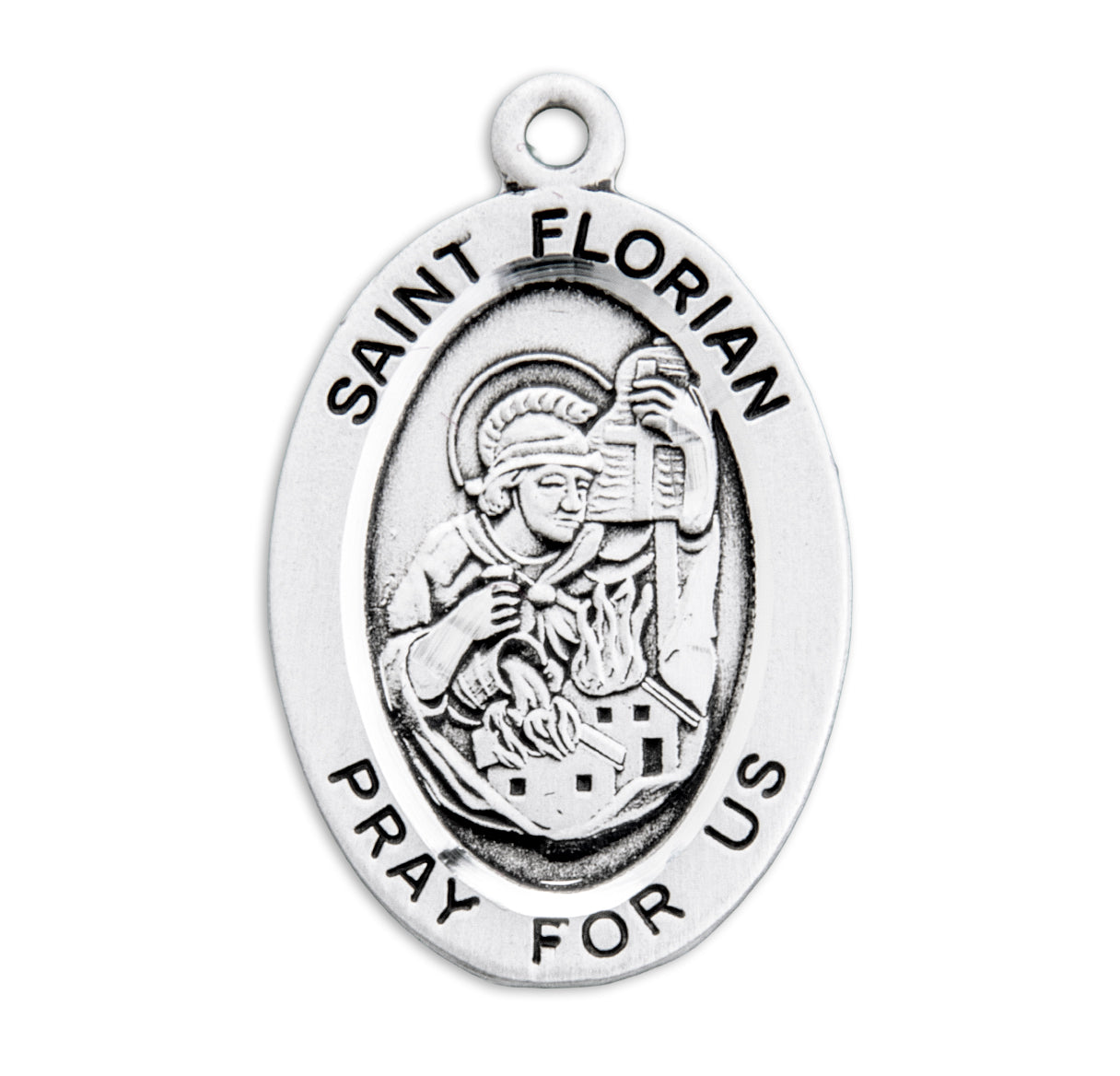 This Sterling Silver Oval Shaped St. Florian Medal is made in the USA.