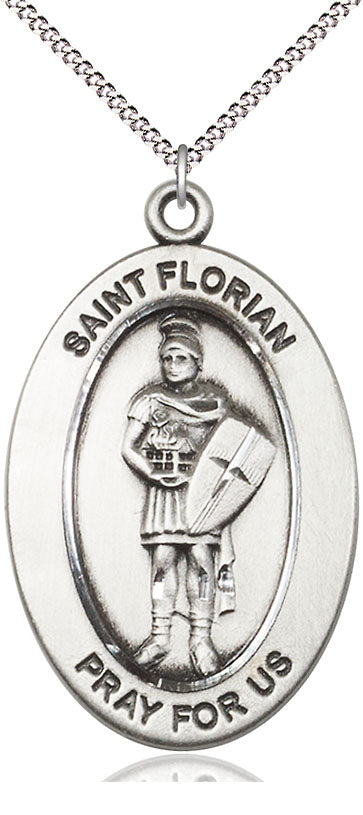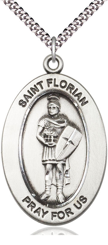 Our Sterling Silver Saint Florian Medal on an 18-inch Light Rhodium Light Curb Chain with Split Ring is proudly manufactured in the USA.