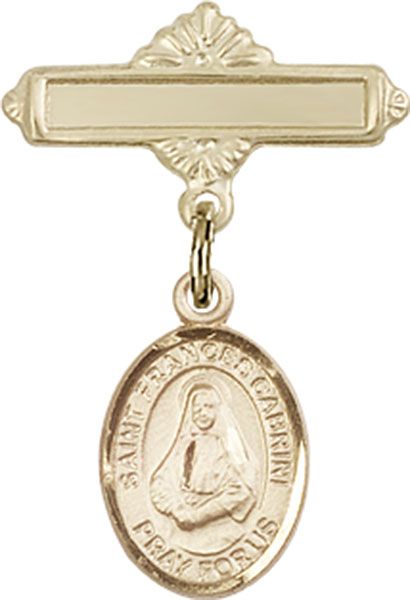 14kt Gold Baby Badge with St. Frances Cabrini Charm and Polished Badge Pin