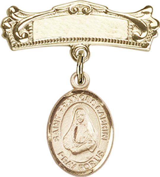 14kt Gold Baby Badge with St. Frances Cabrini Charm and Badge Pin