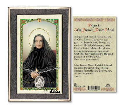 Our Silver Filled Saint Frances Cabrini Medal on an 18 inch Lite Curb Chain with a Prayer to Saint Frances Xavier Cabrini Prayer Card. is proudly manufactured in the USA.