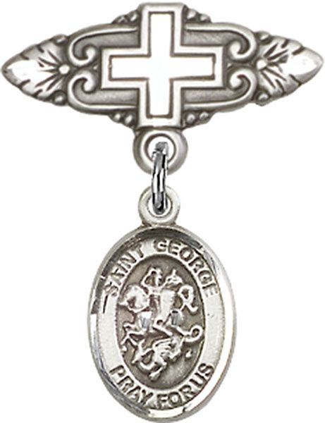 Sterling Silver Baby Badge with St. George Charm and Badge Pin With Cross