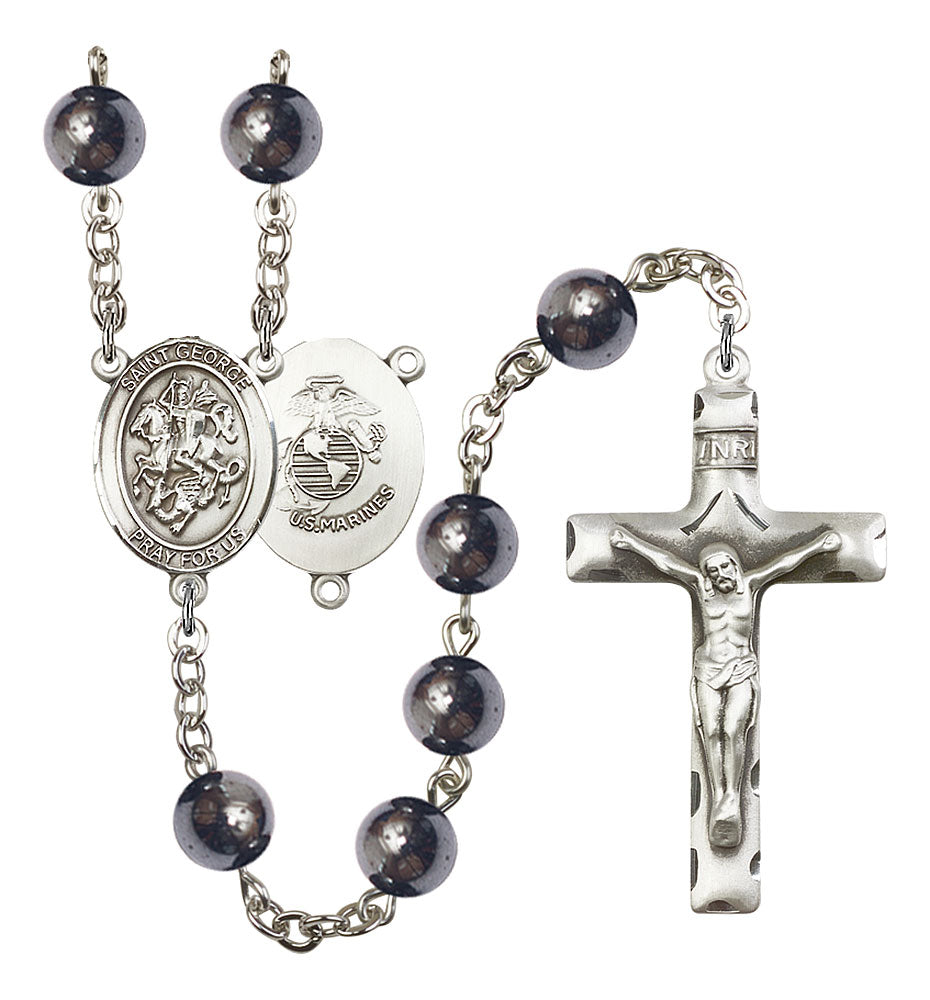 This meaningful Saint George and Marines Rosary features durable hematite beads, combining the patron saint of soldiers with a special devotion for those serving in the Marine Corps. The sleek, metallic gray hematite stones create a rosary that is both masculine and reverent, perfect for Marines, military families, or anyone devoted to St. George. A powerful prayer tool for seeking courage and protection in service to God and country.