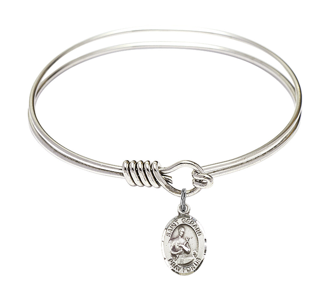 Our 6 1/4 inch Round Eye Hook Rhodium Bangle Bracelet with a Sterling Silver St. Gerard Majella charm. is proudly manufactured in the USA.