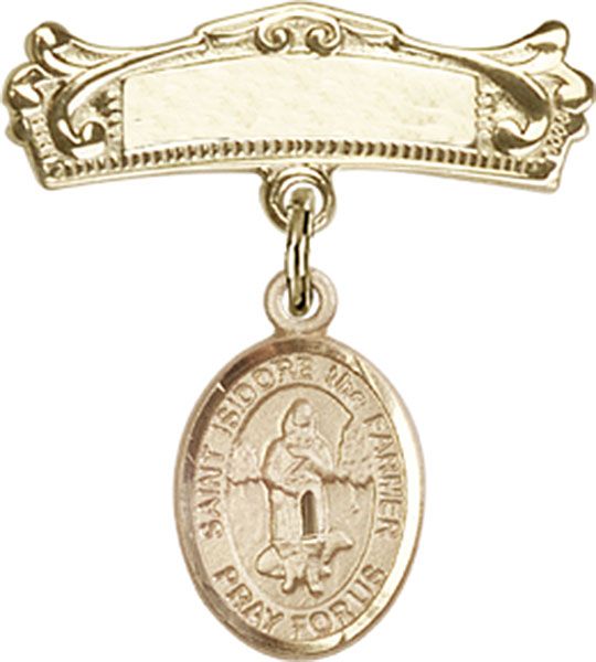 14kt Gold Filled Baby Badge with St. Isidore the Farmer Charm and Badge Pin