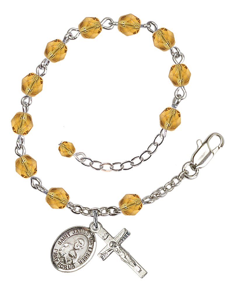 Silver-Plated 6mm Fire-Polished St. James the Lesser Rosary Bracelet in Topaz | Engravable