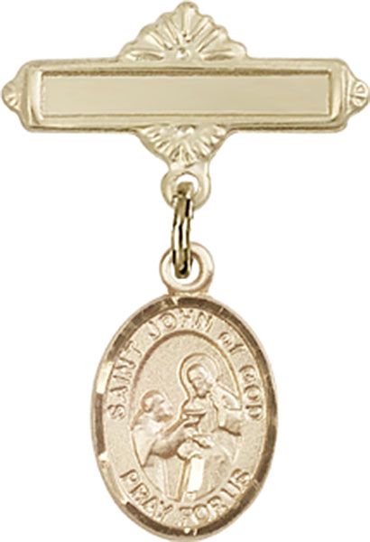 14kt Gold Baby Badge with St. John of God Charm and Polished Badge Pin