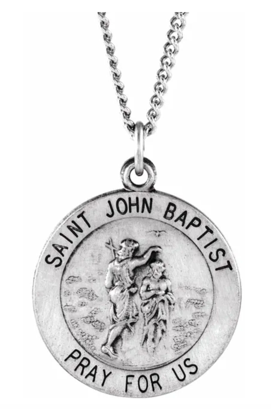 Sterling Silver Round St John The Baptist Pendant Md with Chain