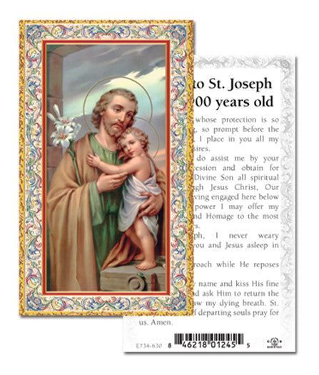 Embrace the powerful intercession of St. Joseph with our 100-Pack - St Joseph Holy Card. Each card measures 2 inches x 4 inches and features a stunning gold-embossed design, making it a beautiful addition to your prayer life or a thoughtful gift for loved ones. This bulk pack ensures you have plenty on hand to share the patronage of St. Joseph, the foster father of Jesus and the protector of families.